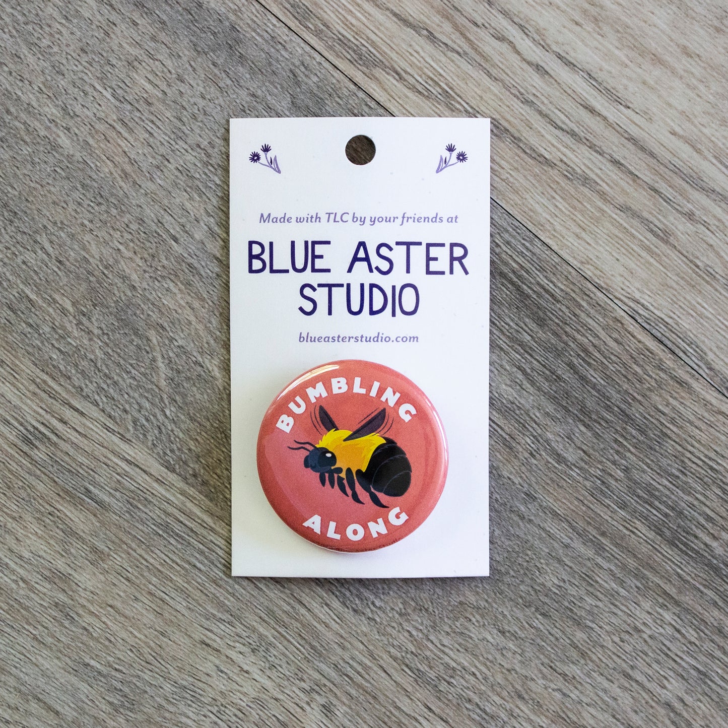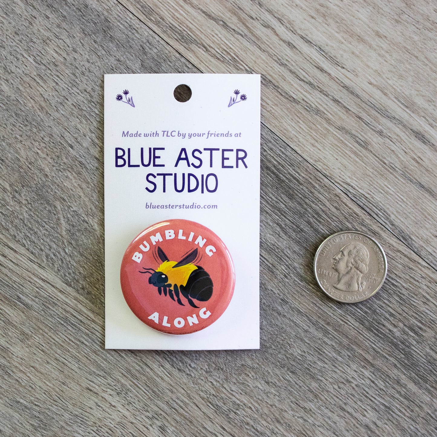 There is nothing wrong with bumbling along through life! Look at how much bumblebees get done in a day! We love watching these bees in our pollinator gardens and it inspired us to create this 1.5" bumblebee button design. This button would make a perfect addition to your jacket, backpack or tote bag! Make a statement and connect with your fellow bumblers!