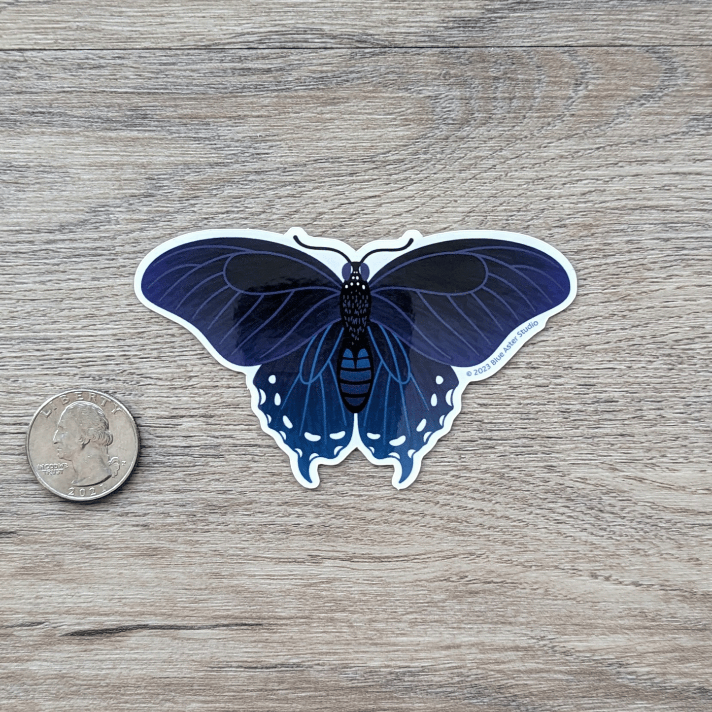 We love the beautiful black and iridescent blue of the pipevine swallowtail butterfly! It is so exciting when we spot them in our garden or out hiking. These insects are a real treat to see fluttering through the air and nectaring on summer blooms. Now you can celebrate the pipevine swallowtails all year round with this fantastic vinyl sticker. It makes a perfect laptop sticker or water bottle sticker so you can have the beauty of this butterfly with you wherever you go!